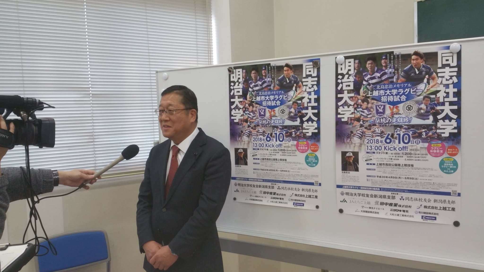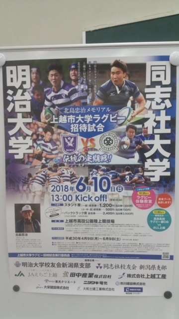 6月10日上越市陸上競技場で明治大VS同志社大が開催されます。